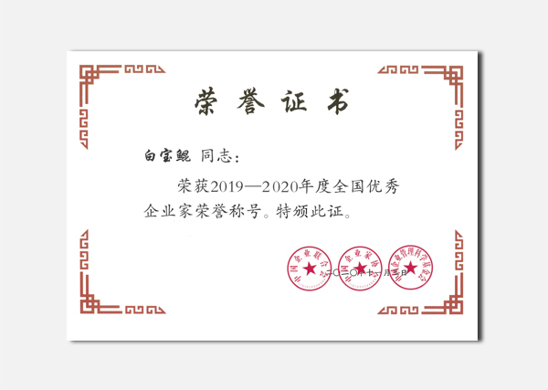 • 公司总裁白宝鲲获“全国优秀企业家”